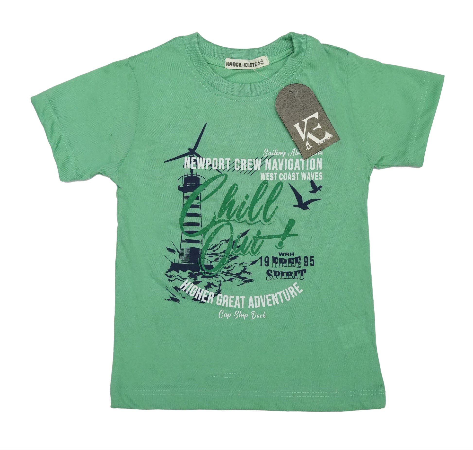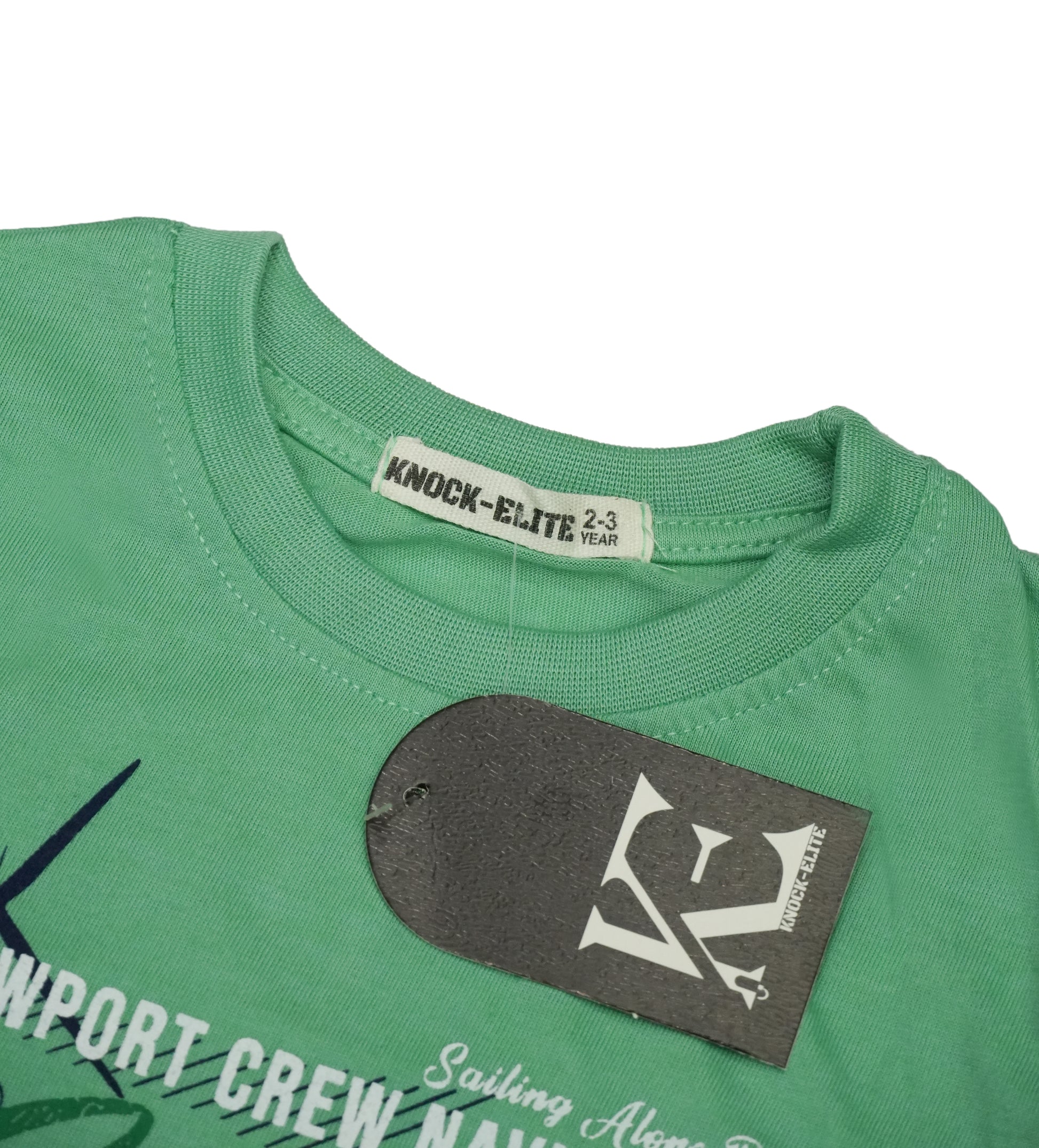 - T-Shirt Color:Â Mint Green with Navy & White Graphic Print